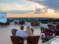 В мансарде отеля находится бар-ресторан «Панорама», который порадует вас своими напитками, вкусной кухней и качественным обслуживанием. Из бара-ресторана вы можете выйти прямиком на чудесную террасу отеля, с которой открывается замечательный вид на город. На террасе вы найдете большой бассейн с морской водой, джакузи с гидромассажем, а также удобные лежаки и диваны для принятия солнечных ванн. Также на террасе располагается небольшой тренажерный зал для тех, кто хочет всегда оставаться в форме.